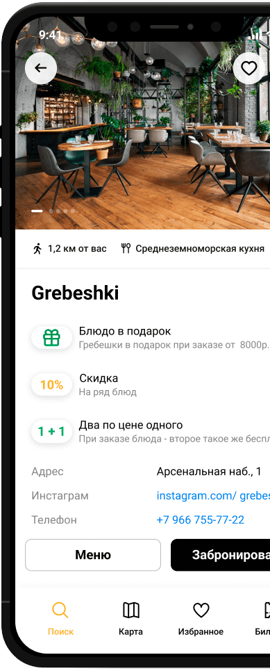 Размещайте информацию в вашем заведении, меню, специальных предложениях и получайте больше бронирований и продаж